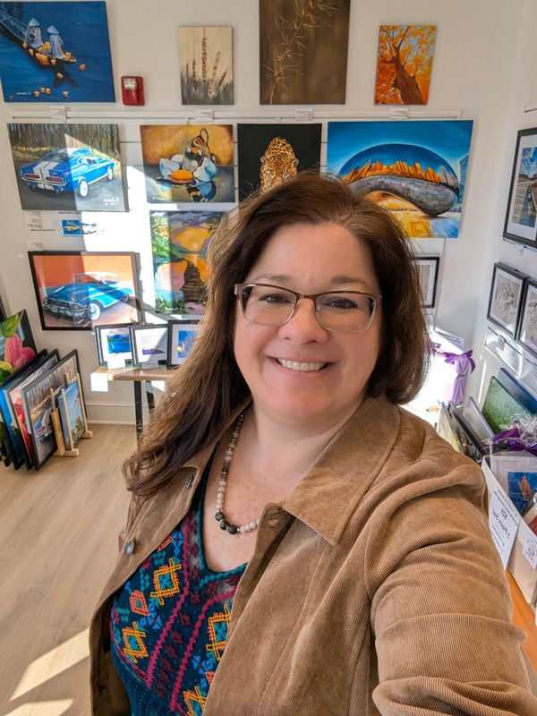 Cindy Rafkind is an artist as well as the Director and Founder of the Huntley Art Hub Gallery. She is a creative entrepreneur and passionate supporter of local artists. With a background that blends healthcare, the arts, and public service, she brings vision, drive and a deep sense of purpose to the Huntley Art Hub Gallery. Cindy's artwork includes oil paintings and handmade jewelry. Her oil paintings range from expressive landscapes to whimsical pet portraits and reflect her love for color, character and storytelling through art. She sources materials for her jewelry from regional gem shows, selecting high-quality semi-precious stones like amethyst, lapis, jade, labradorite, garnet and jasper to craft elegant, meaningful bracelets and necklaces. With the Huntley Art Hub Gallery, Cindy has created a vibrant space that celebrates creativity and connects people.